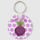 This adorable design features a cute smiling purple beet with a dot pattern background. Drawn in bright cartoon illustration style.