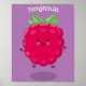 Cute happy raspberry cartoon illustration poster