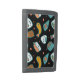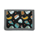 Cute happy seamless sushi pattern on black tri-fold wallet