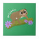 Cute happy slow loris on branch cartoon ceramic tile