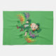 Cute happy smiling dancing leprechaun, a rainbow kitchen towel