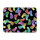 Colourful illustration of happy smiling feet emoticons set against a black background. Image available on various gifts and products.