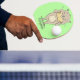 Cute happy smiling hamster with peanut cartoon ping pong paddle