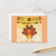 Wish everyone a happy Thanksgiving this year with this cute postcard featuring a cartoon turkey holding a pumpkin!