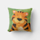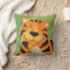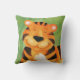 Playful smiling big cat art throw pillow cushion perfect for kids rooms. Cute soft tiger, great in a baby's nursery or on a child’s bed. Uniquely painted and designed by Sarah Trett. www.sarahtrett.com