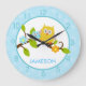 Super cute owl clock featuring a blue and yellow clock with a light blue dot border.