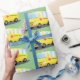 Cute happy yellow school bus cartoon wrapping paper