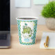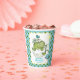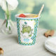 Serve up refreshments with a touch of prehistoric charm using our adorable Cute Hatching Dino Baby Shower Paper Cups! These delightful cups feature a sweet baby dinosaur just peeking out from its egg, joined by a cheerful little bird. The vibrant blue background is adorned with playful green crown accents, perfectly complementing your dinosaur-themed baby shower.
