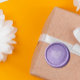 Handmade by wax seal stamp with your name in curved text beneath a cute heart.