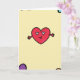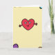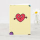 This design shows a bright red heart character in the middle, outlined in black, set against a soft creamy yellow background. It has a big happy smile with one little bucktooth showing, which makes it look sweet and friendly ❤️. The eyes are two small pink hearts, giving it a loving, flirty look 💘. Its arms are stretched out wide, ending in simple three-finger hands, like it’s ready for a hug. Around the edges, you can see curved bits of purple, light blue, and orange that hint there are more fun shapes beyond the frame. There isn’t any text on the front in this image, so the heart character is the main focus. It feels like a light, cheerful card for romance or close friendship, and it’s easy to share Valentine’s Day feelings with someone you care about 😘.