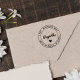 Cute address rubber stamp with your name in a bold, cute script above a heart, and your address written in text curved around your last name.
