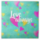 A cute original watercolor valentine pattern with pink and yellow hearts on a aqua blue background. I added text templates that say: Love always on the front and you add your own name to the back. Choose your size.