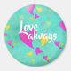 A cute original watercolor valentine pattern with pink and yellow hearts on a aqua blue background. I added text templates that say: Love always on the front and you add your own name to the back. Choose your style and size.