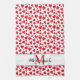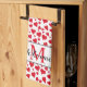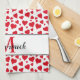 Cute Heart Pattern Red White Monogram Personalized Kitchen Towel