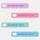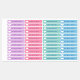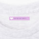 Cute and colorful labels with white hearts and your name or your child's name in modern fonts. One lilac with purple text, one pink with purple text, one turquoise with blue text, and one sky blue with blue text.