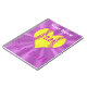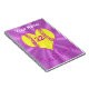 Cute Heart Shaped Softball Notebook Personalized with her Jersey NUMBER (or Monogram) and her NAME. Yellow heart shaped softball with pretty purple pink threads on a radiant orchid (new color of the year) satin look background.