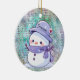 Cute Heart Snow Man Pastel Pattern Name Ceramic Ornament