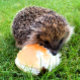 A cute little hedgehog enjoying a rather large meal!