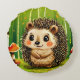 Adorable hedgehog illustration printed on a green throw pillow, ideal for kids rooms, nurseries, or whimsical home decor. Soft decorative cushion brings playful charm, color, and cozy accent to any space.