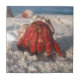 Cute Hermit Crab on White Sandy Beach Closeup Tile