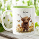 This personalized mug is a perfect gift for animal lovers. The cute highland baby cow sitting in a garden of yellow sunflowers is sure to bring a smile to anyone's face. This mug can be customized with a name or message. It's perfect for enjoying your morning coffee or tea. Order now and surprise your loved ones with this adorable gift idea.