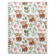 Cute Highland Cows & Pink Flowers Pattern Floral Notebook