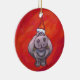 Cute Hippo in Santa Hat on Red Ceramic Ornament