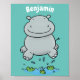 Cute hippo jumping cartoon illustration poster
