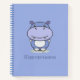 A nice blue notebook with a cute hippo and customizable text for school, office or simply to take note or write recipes at home. On the back, a hippo face is printed.