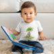 Cute baby t-shirt featuring a cute hippo reading a book. You can customize this design with your or your loved one's baby name, or remove the name by clicking "Personalize this template" button. Perfect gift for baby shower and birthday.