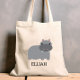 This kids' tote bag for animal lovers features a cute illustration of a gray hippopotamus. Personalize it with your child's name in black letters. Makes a great book bag for boys or girls!