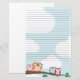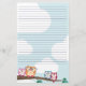 Cute stationery for your original missives featuring a line of colorful owls perched on a branch.