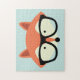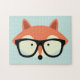 Adorable vector illustration of a cute little red fox wearing an oversized pair of glasses.