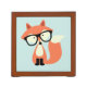 Cute illustration of a red fox wearing an oversized pair of reading glasses.