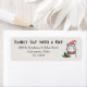 Cute Holiday Christmas cat return address label featuring an illustration of a cute cat in a red and white winter hat and scarf looking funny and christmas holly by its side.