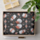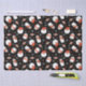 A cute penguin with a red scarf, a santa face, a snowman, christmas peppermint candy and snowflakes on a black background decorates this Christmas wrapping paper. A whimsical, fun pattern for your Christmas presents. Available in other colors. Designed for you by Blackberry Boulevard.
