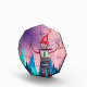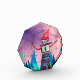 Watercolor drawing with a robot, snowflakes and mountains.