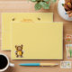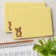 A cute teddy bear dressed like a honey bee adorns the front of these envelopes. Two bees fly above your return address on the top back flap. The interior is a pattern of pretty brown-centered yellow flowers. All text can easily be changed to your information.