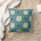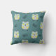 A cute and whimsical owl pillow, featuring a pattern of adorable cartoon owls on a teal background, with the words 'hoot!' scattered around them. This would make a lovely housewarming gift, birthday gift for owl lovers or make a cute addition to a child's bedroom. Please note the text can be removed if desired, with just the owls showing on the cushion if desired.