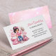 Elevate your cleaning business’s first impression with this adorable yet professional maid-themed business card, perfectly suited for house cleaning professionals, residential maids, and deep cleaning specialists, housekeeping services, home cleaning services. Featuring chic fuchsia pink faux glitter detailing, this eye-catching design brings warmth and trust to your brand while communicating expertise and care. The whimsical illustration of a cartoon cleaning maid holding essential tools like a spray bottle, vacuum and mop bucket, and bubbles evokes a sense of dedication, reliability, and thorough cleaning service.