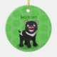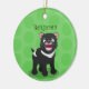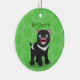 Lightweight, smooth, pure white ornament with nice sheen. Perfect size to be seen from across the room ... and to attract closer inspection! Price was great for ordering enough for the whole family! Clear, bold black design just as requested. Matches the order exactly. Just so nice!