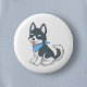Adorable cartoon black and white husky dog with blue eyes and matching blue bandana.