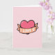 This Valentine’s Day card features a soft blush pink background with a large fuchsia heart centered on the front. The heart appears puffy and shiny, with a small highlight that gives it a rounded, candy-like look. A peach-colored banner wraps gently around the heart, curving as if it’s floating across the surface. The message “I LOVE U” is printed in white capital letters on the banner, standing out clearly against the warm color. A thick black outline traces both the heart and the banner, adding definition and a hand-drawn feel. The bold heart, gentle colors, and clear message come together to create a sweet, straightforward expression of affection. It’s a thoughtful choice for sharing love with a partner or close friend on Valentine’s Day or any time you want to say it simply and sincerely.
