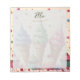 Adorable personalized notepad featuring colorful ice cream cones, cupcakes, and candy. Perfect gift for ice cream lovers! Add your name for a unique touch.