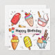 Say happy birthday with this ice cream dessert-themed birthday card. It features 6 types of ice cream treats.