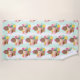 Beach towel with a summertime pattern with a bowl of ice cream with 3 delicious scoops covered in candy sprinkles. An ice cream cone also with 3 scoops of chocolate, vanilla and strawberry. A dessert bowl filled with neopolitan flavored ice cream with a delicious cherry on top.