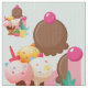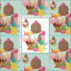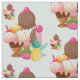 A summertime pattern with a bowl of ice cream with 3 delicious scoops covered in candy sprinkles. An ice cream cone also with 3 scoops of chocolate, vanilla and strawberry. A dessert bowl filled with neopolitan flavored ice cream with a delicious cherry on top.