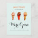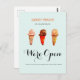 Tell your customers that your shop is open again post Cover -19 by sending this sweet postcard featuring retro watercolor ice-cream cone illustration in soft pastel colors.