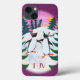 A fun Case-Mate Xtreme case with the option to personalize for your iPhone 5c smartphone, with two cute Penguins having fun, ice-skating, in a snowy landscape with fir trees and a setting sun; from a hand-painted paper collage by Judy Adamson.