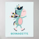 Cute Ice Skating Unicorn Teal Pink Custom Name Poster
